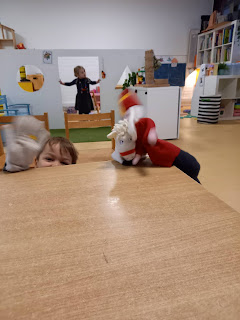 We kregen heel wat leuke paardenspullen om te bekijken en te spelen in de klas. Zo konden we zelf eens ruiter worden en Sinterklaas helpen. We hielpen Sinterklaas ook met zijn pietenspel! We mochten met natuurspullen kunstwerkjes maken en moesten ook zakspringen! Nu was het echt aftellen naar de Sint! We mochten peppernoten wegen, meten van wie die schoen was in de klas en een schoen versieren voor de Sint! Er werd een speelgoedmachine gebouwd net zoals in het voorleesboek.